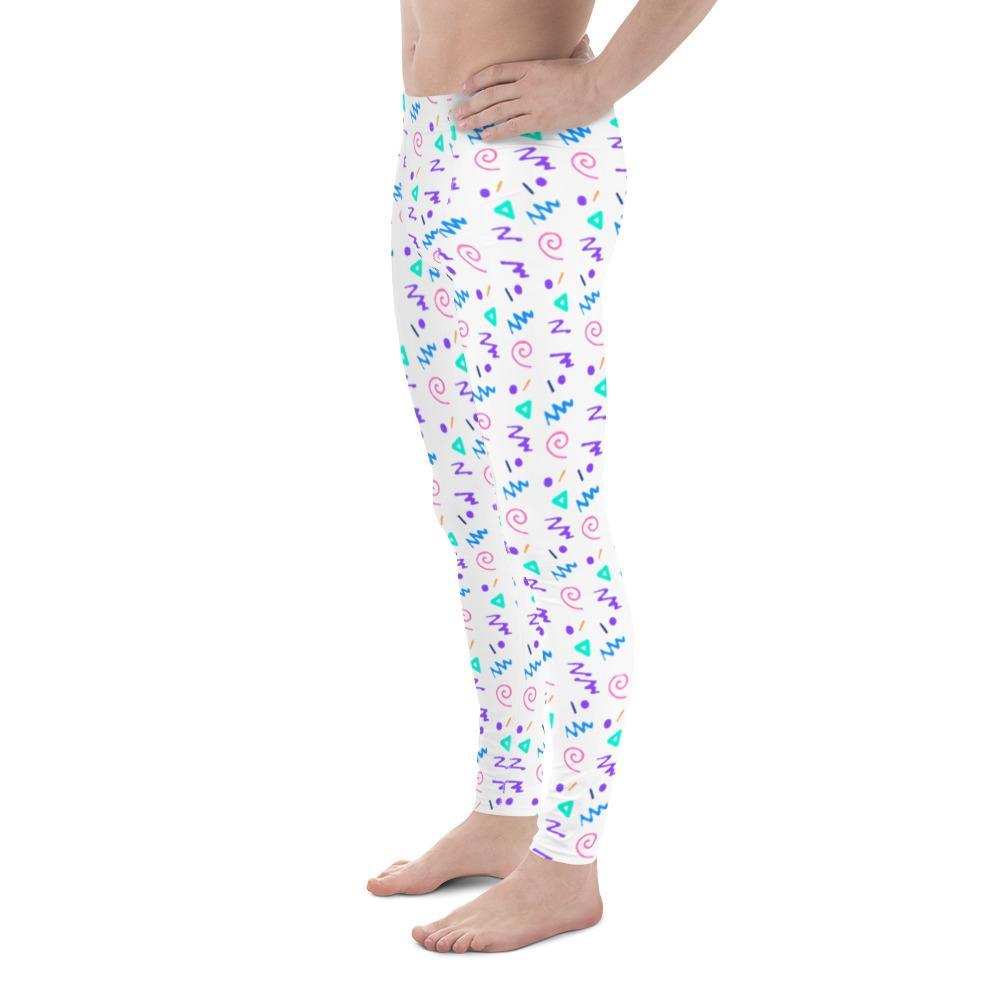 Memphis style men's leggings. Super soft and stretchy material makes them the perfect choice for a variety of activities. Wear them on their own or under shorts. These leggings are bound to become your favorite workout apparel 💕