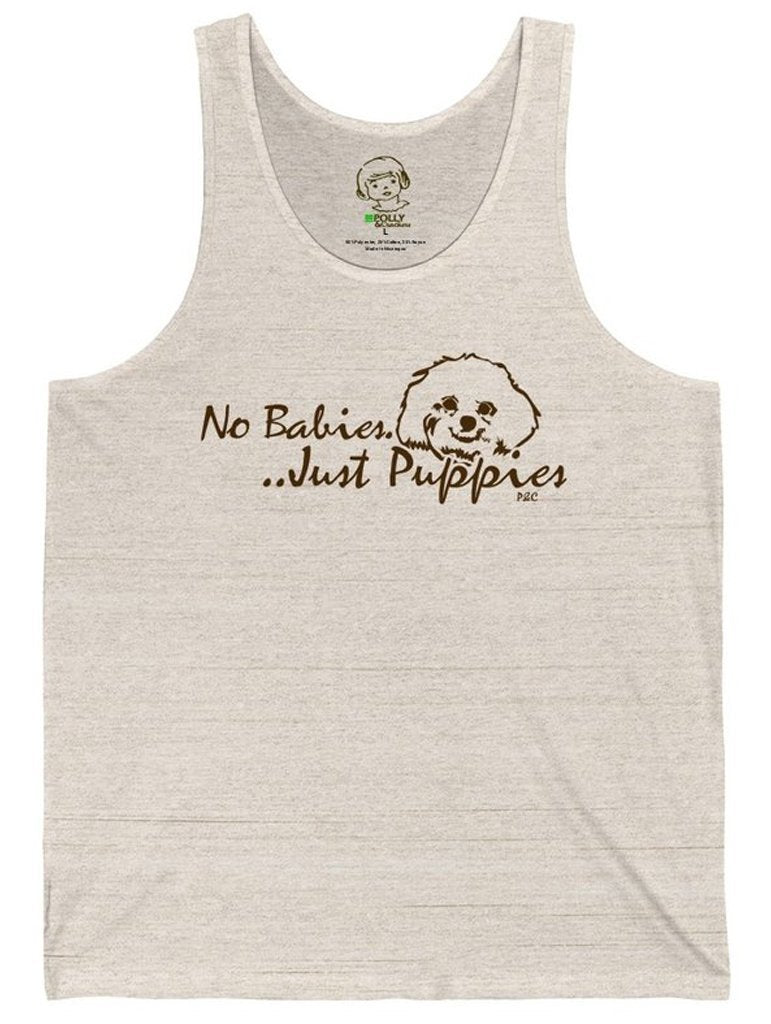 Why have babies when you can just have puppies? This funny tank top is a great dog lovers tank, anti-babies tank, and perfect gift for the dog lover. This must-have fitted unisex tank fits like a well-loved favorite. High quality print makes it an ultimate statement tank for years to come. No babies, just puppies!