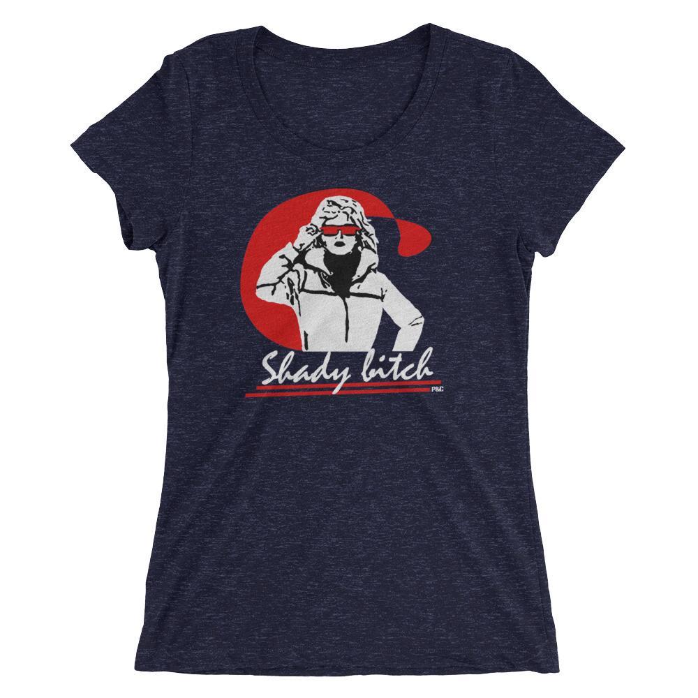 "Shady Bitch" women's shirt. Classic design by Polly & Crackers. Triblend material. A super-soft, form-fitting, breathable t-shirt with a slightly lower neckline than a classic t-shirt. Classy & sassy, only by P&C.